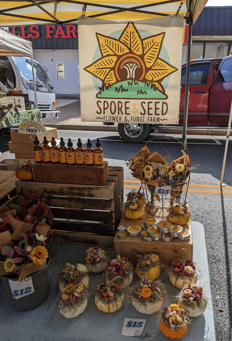 Spore and Seed is a small but mighty flower and fungi farm in Baltimore County, MD. They are committed to providing their local community with high quality fresh cut flowers and dried flower products grown in a way that honors nature. Started by Courtney in 2018, find incredible arrangements at the market and sign up for their classes, such as dried flower bouquet and wreath making. Check them out on Instagram here.