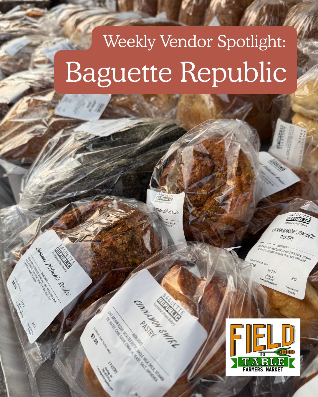 Baguette Republic has been with Field to Table farmers markets for 2 years, and their favorite part of the market is being a part of a thriving community!