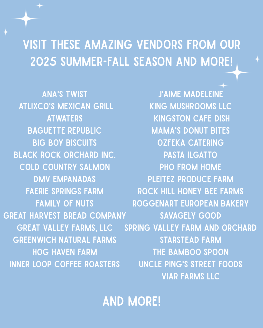 Field to Table hosts four local farmers markets in the Arlington, Virginia area that provide goods grown, harvested, or produced within 125 miles of the markets. We are committed to providing fresh, high-quality products while facilitating a welcoming community atmosphere.