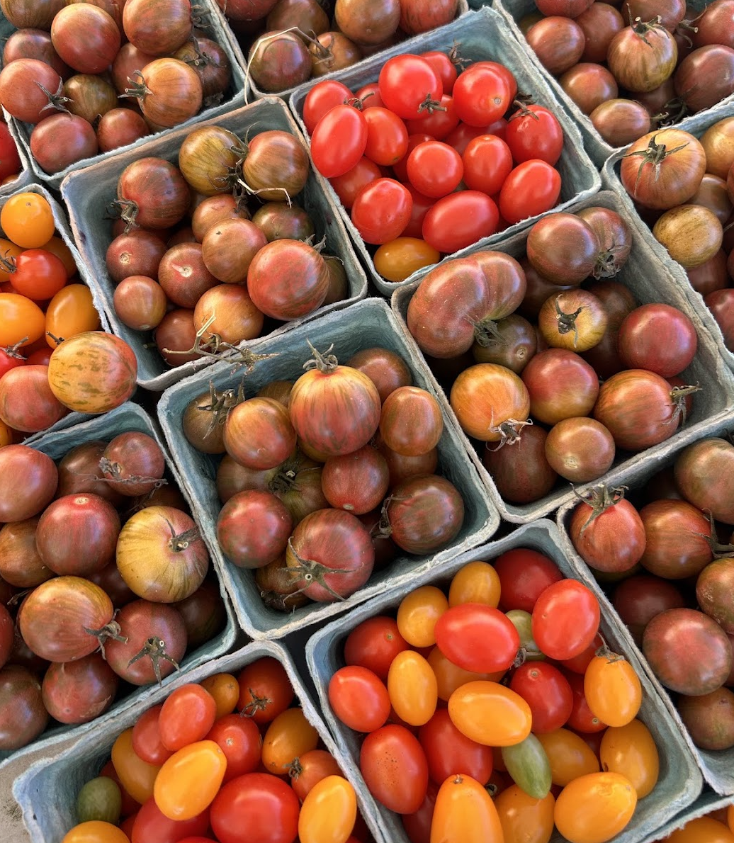 Apples - Basil - Beets - Brussels sprouts - Broccoli - Pears - Spinach - Arugula - Pumpkins - Carrots - Chard - Cucumbers - Grapes - Kale - Peppers - Potatoes - Radishes - Tomatoes - Zucchini - Winter Squash