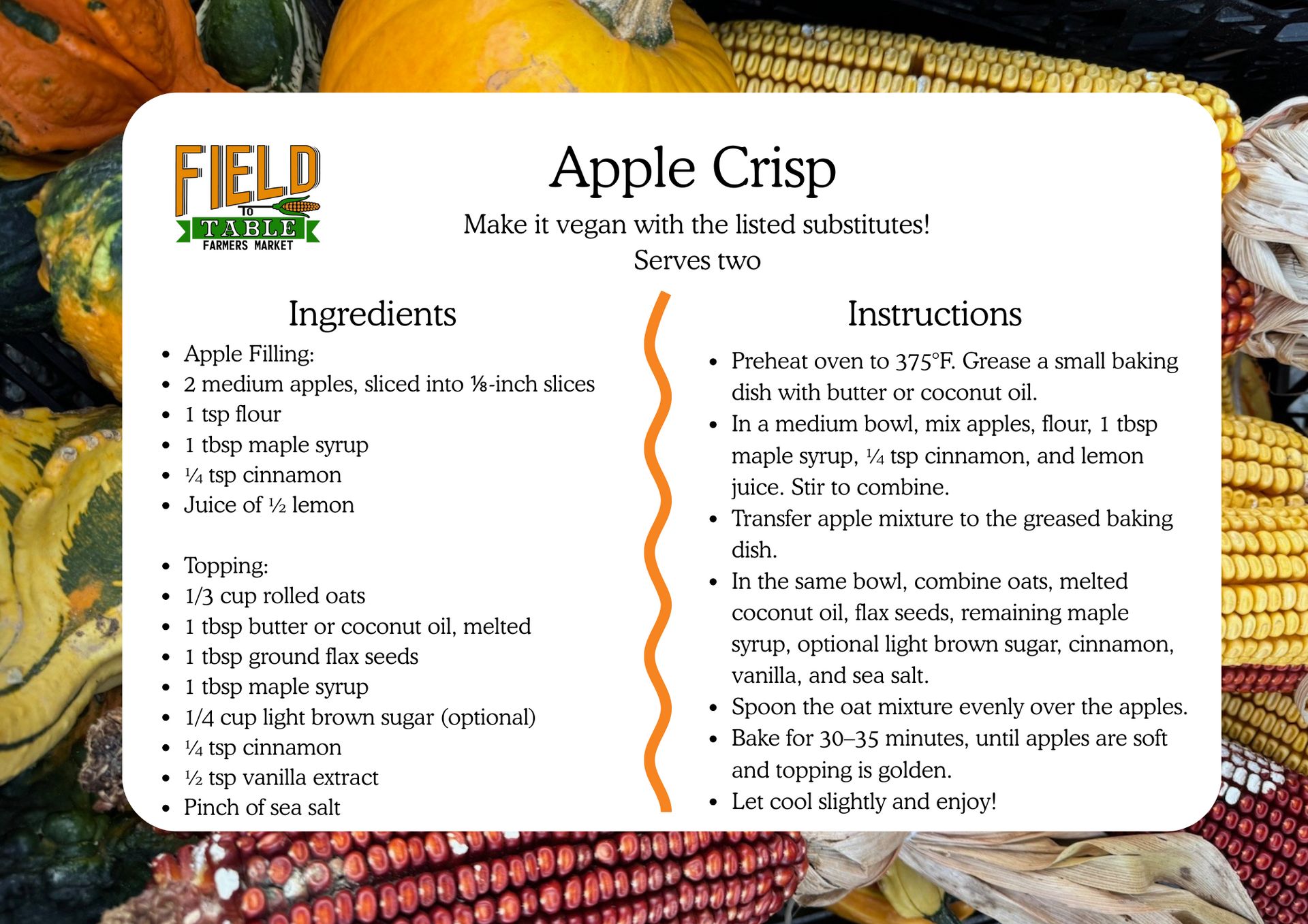 Want to submit your own recipe for the Field to Table recipe collection? Submit through the form here!